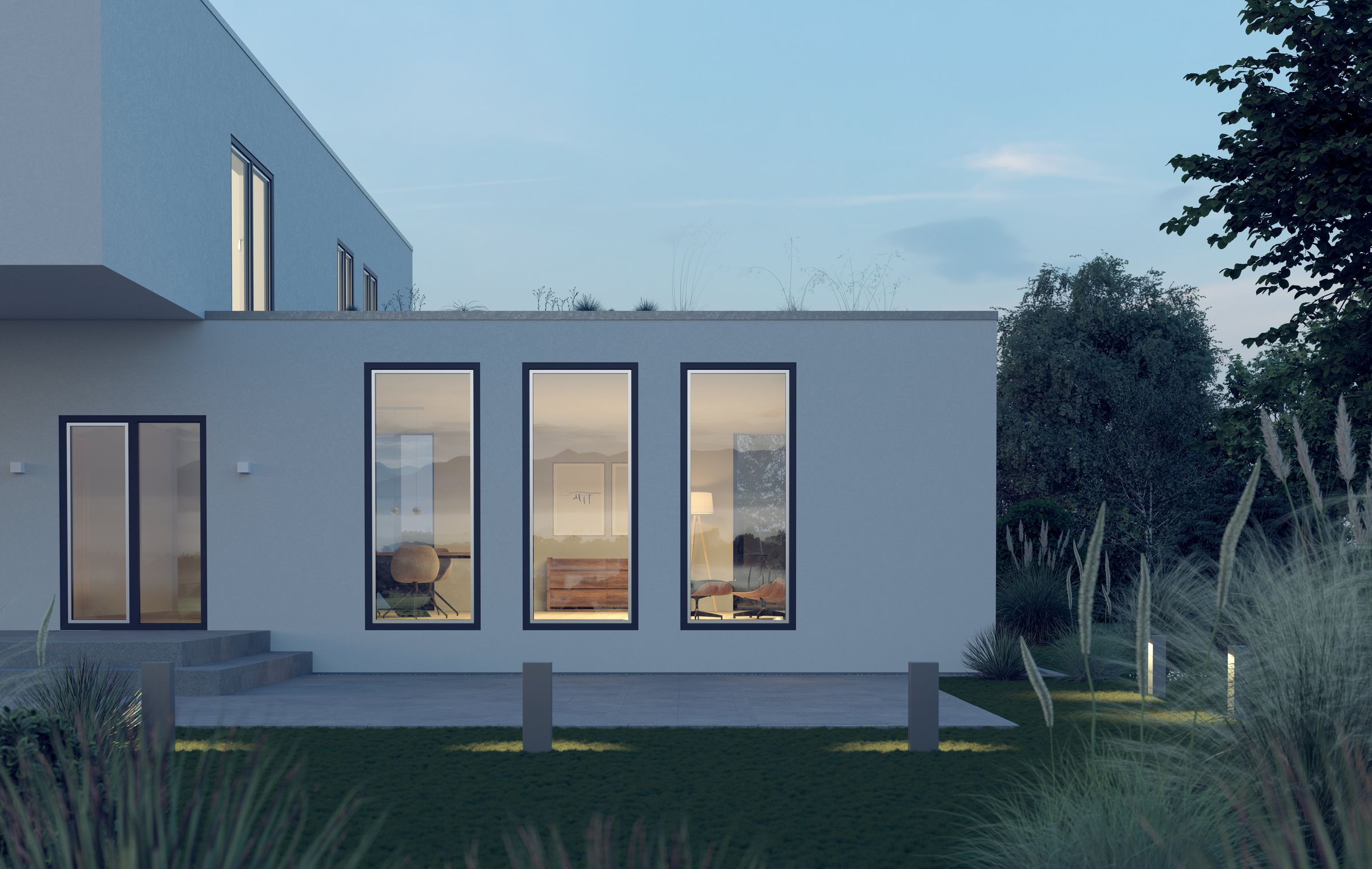 • bluEvolution92 – für Kernsanierungen und hochwertige Immobilien, bestens geeignet für die Kombination mit realMaterial (z.B. Kupfer-Look außen oder Leder-Kaschierung innen)